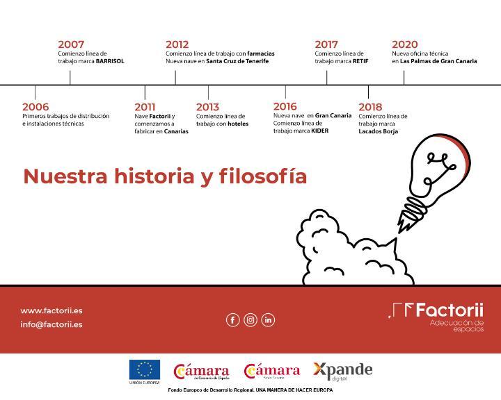 La Calle Jesús Hernández Guzmán de Santa Cruz de Tenerife fue testigo y escenario del nacimiento de Factorii en el año 2006. Poco a poco, la empresa fue formando los cimientos y base de la gran empresa que es hoy en día.
